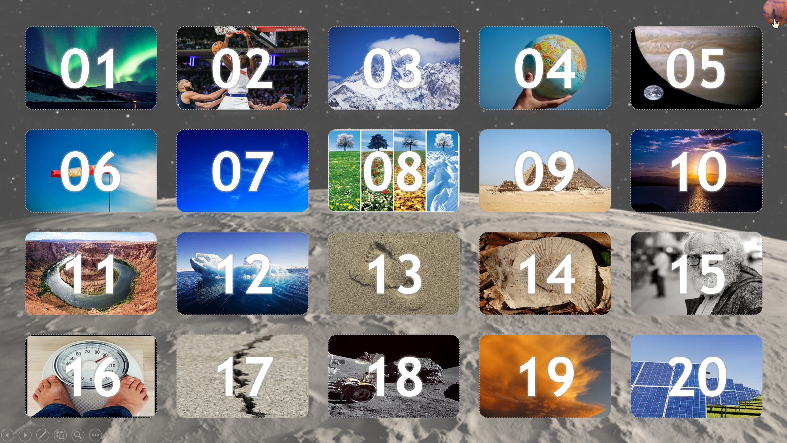 이 경우 1번문제 슬라이드를 복제해서 20문제 슬라이드를 번호만 달라지고 똑같이 생성합니다.
