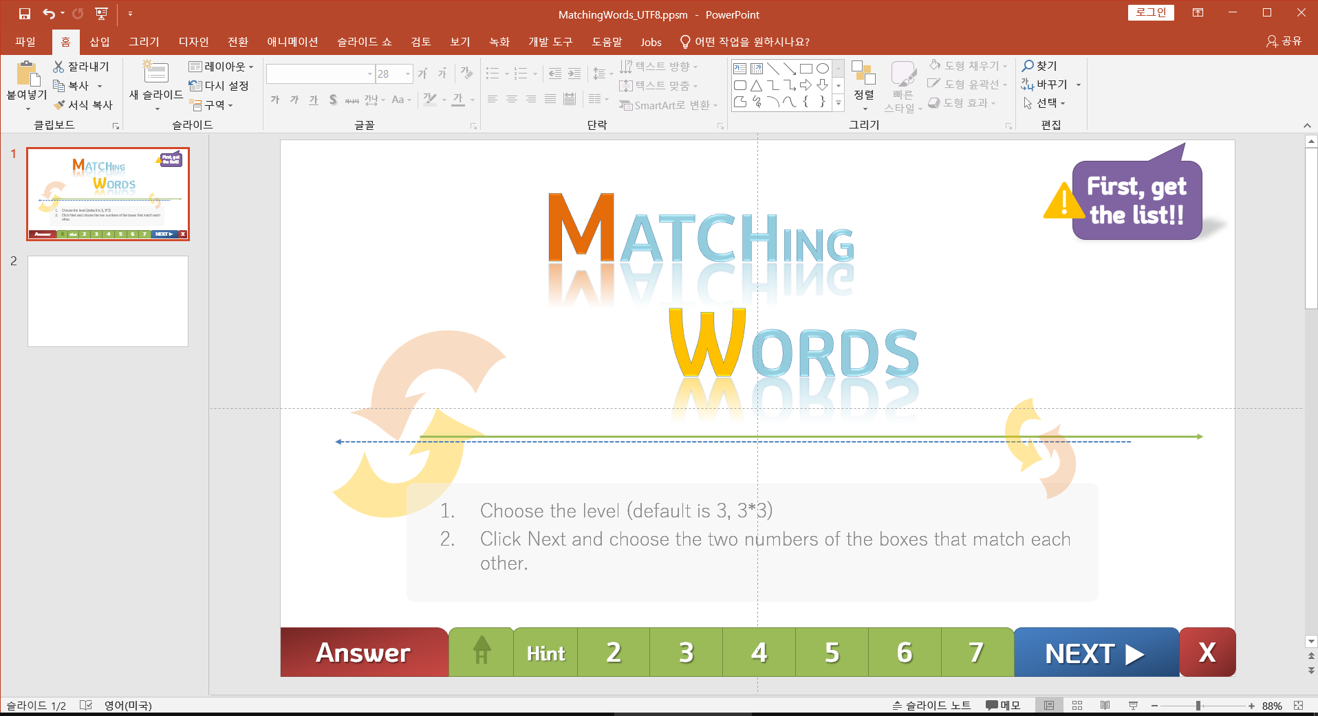 64비트이신분들(32비트포함)은 MatchingWords64.ppsm 을 실행하세요.(2019.09.30 추가)