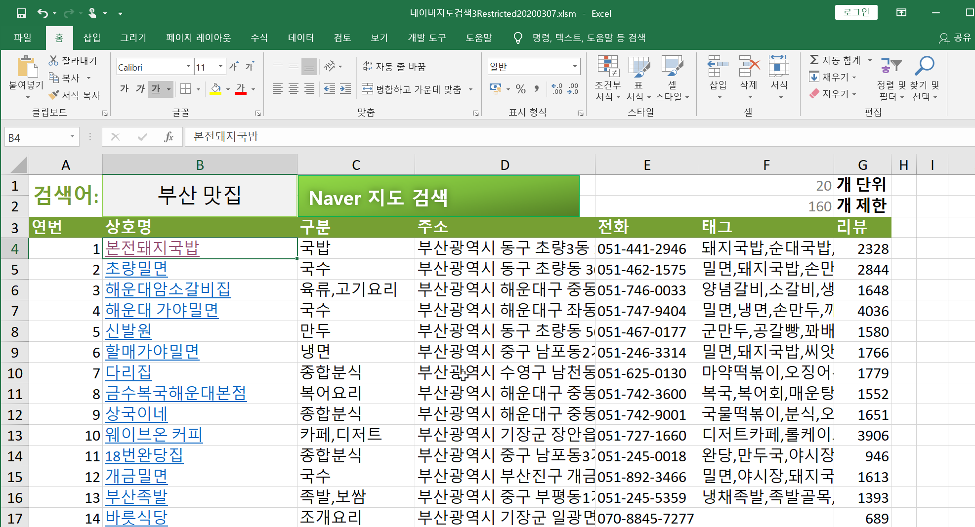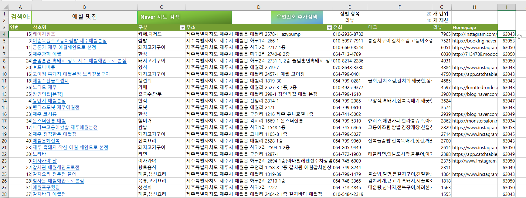 네이버지도검색 결과를 엑셀로 수집하는 매크로입니다.