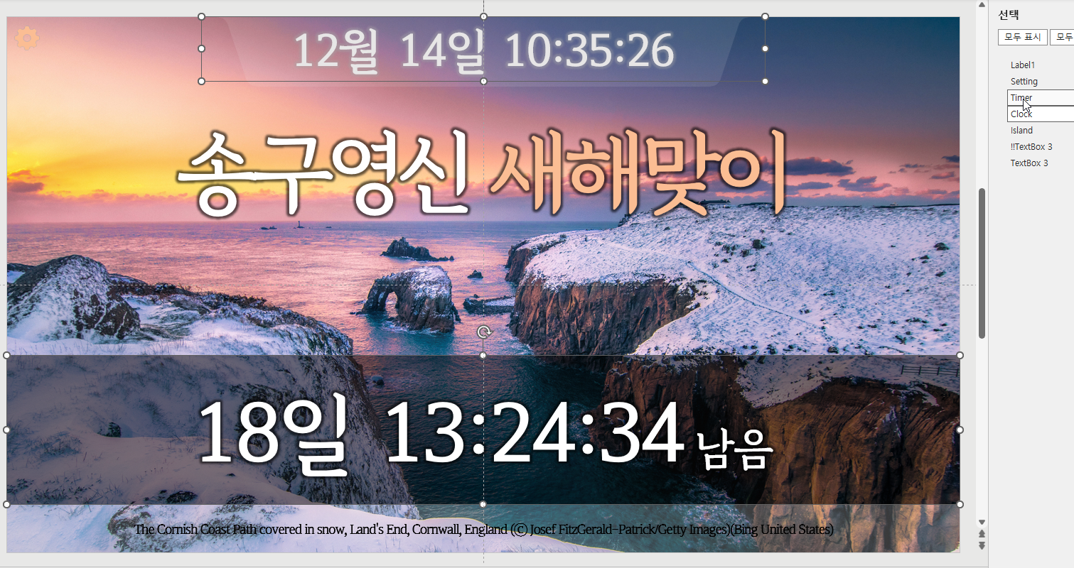 새로운 해가 가까이 다가오는 이 시점에서 새해맞이 카운터를 만들었습니다.