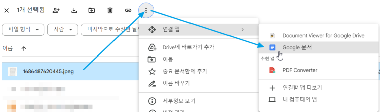 1. 구글 드라이브에 올린 다음 연결앱에서 구글 문서로 열면