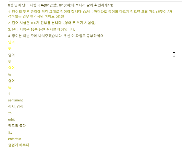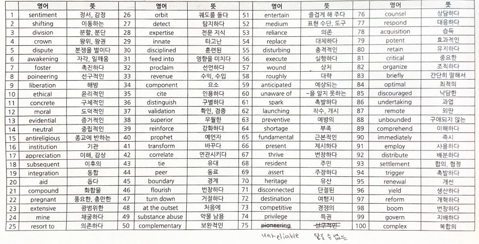 위와 같은 영어단어 목록을 영단어/우리말뜻으로 정리하고 싶다는 질문입니다.
