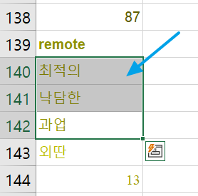 아래처럼 뜻 대신 숫자가 나오는 경우는 직접 찾아서 입력하거나 엑셀파일을 수정하고 다시 매크로를 돌립니다.