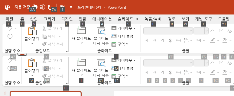 파워포인트, 엑셀 등에서 Alt키를 누르고 일련의 키를 눌러서 단축키를 쓸 수 있습니다.