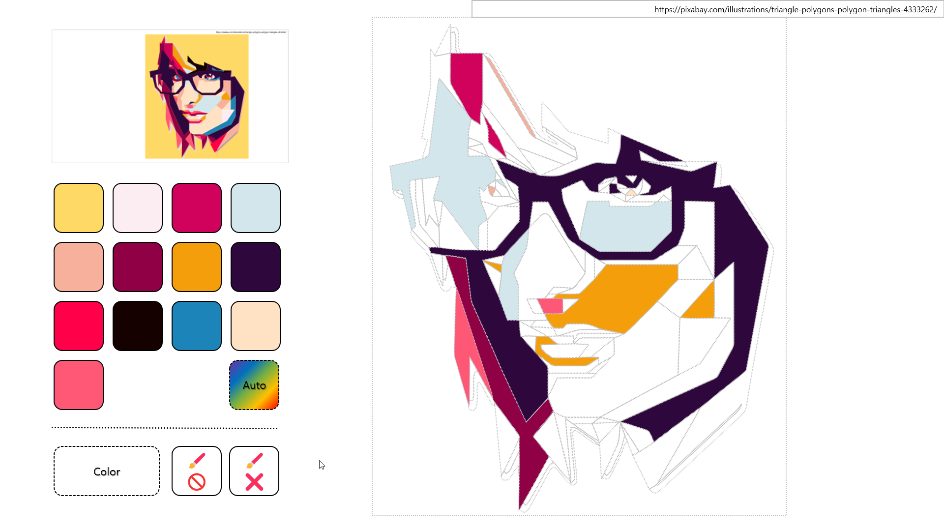 현재 세 가지 샘플은 pixabay.com의 polygon 이미지를 샘플로 가져와서 벡터 도형으로 변환한 것입니다.