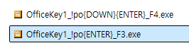 예를 들어 실행파일명을 OfficeKey1_!po{ENTER}_F3.exe 으로 바꾸고 실행하면