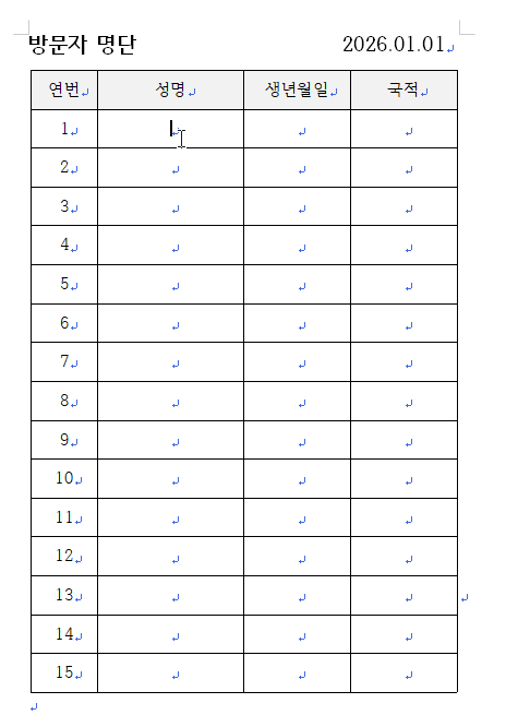 아래한글 문서에 아래와 같은 표 양식이 있습니다. 성명란에 이름을 쭉 입력하려고 합니다.