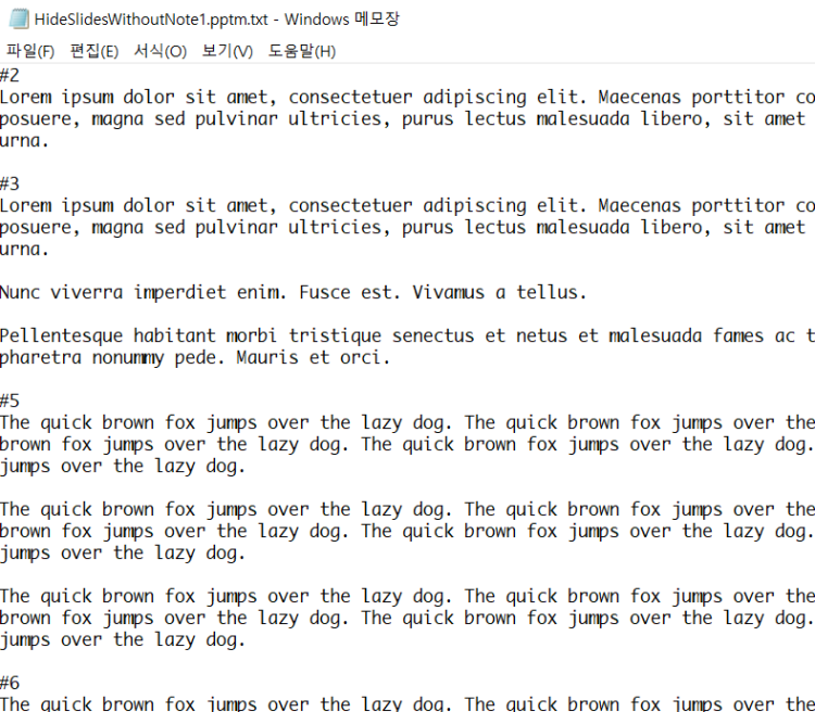 또한 슬라이드 노트 내용을 아래처럼 텍스트 파일로 따로 저장할 수도 있습니다.