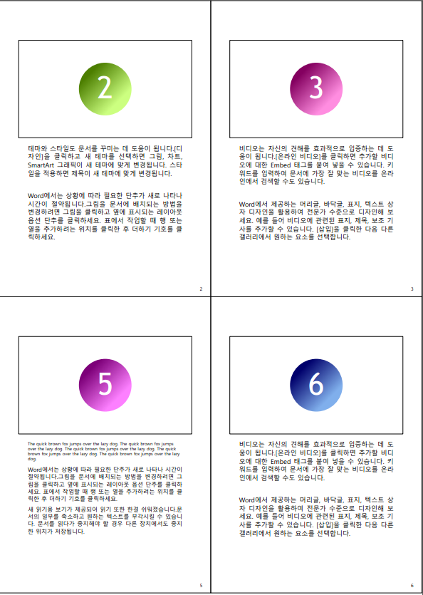 아래처럼 슬라이드 노트가 있는 슬라이드만 A4한장에 2슬라이드씩 혹은 4슬라이드씩 출력되게 할 수 있습니다.