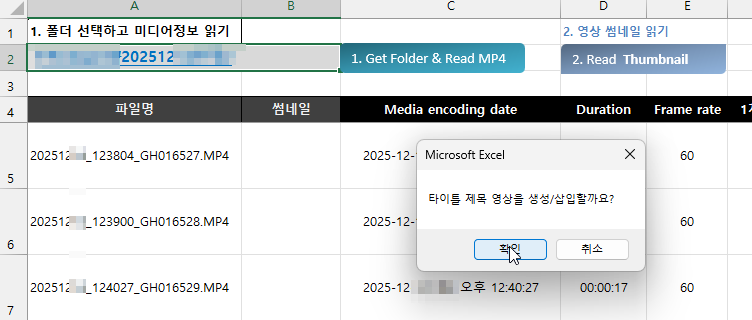 물론 엑셀에서 영상을 직접 편집하는 것은 아니고