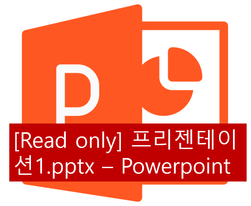 파워포인트 파일에 오류는 없지만 읽기전용 상태로 변해서 열리는 경우입니다. 문서를 열거나 작업 중에 파워포인트 프로그램 상단에 위 처럼 읽기전용 표시가 뜹니다.