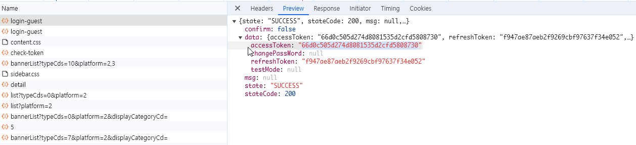 또는 이렇게 검색해서 Json("data")("resultDocuments")(0)("sale_CMDTID") 값을 구하면 됩니다.