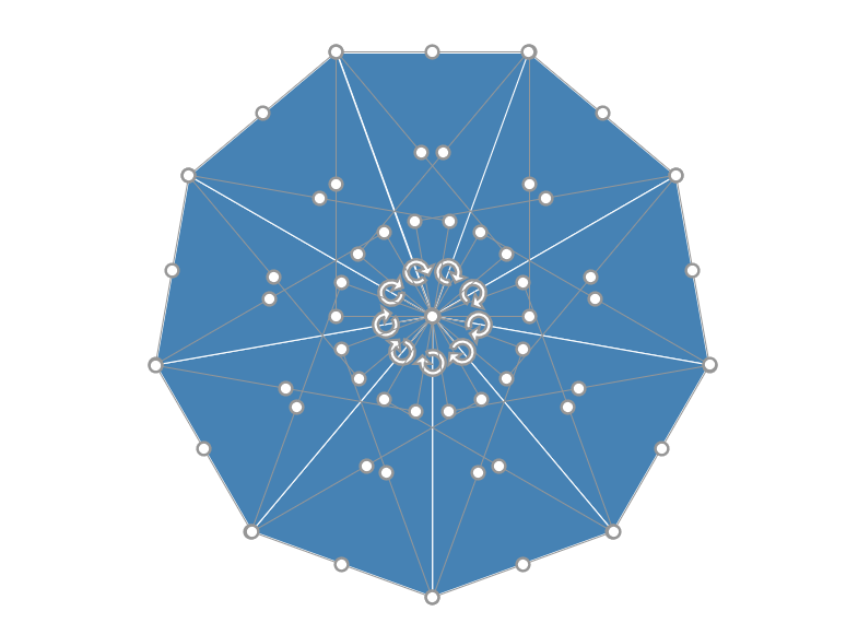 1. 위 그림대로 이등변삼각형을 그려서 각 개수만큼 복사해서 회전시켜준 다음 마지막에 모든 삼각형을 합쳐주도록 하겠습니다.