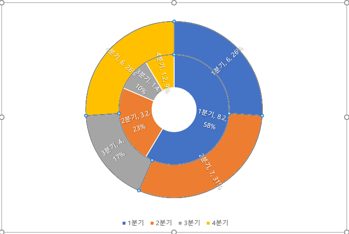 원형이나 도너츠형 차트의 데이터 라벨은 기본적으로 가로방향입니다.