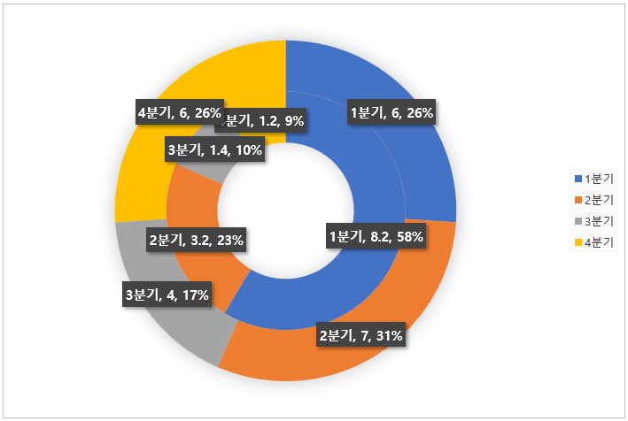엑셀 2016부터 지원하는 '선버스트' 형태 차트를 이용하면
