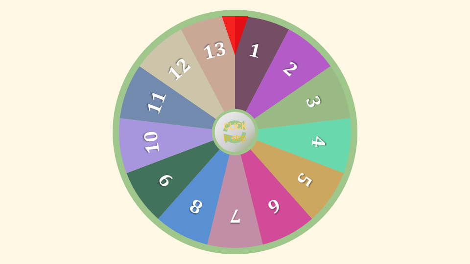 2. Roulette 생성기( 매크로 허용 필요, 결과물은 매크로 필요 없음, 결과물 Animation 타이밍속성 수정 필요. 무한 회전판을 클릭하여 멈춤.)