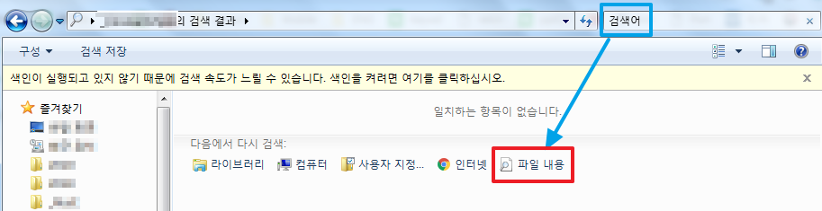 위처럼 윈도우탐색기에서 .txt, .csv, .xlsx, .pptx, .html 등의 파일에 대해서는 내용 검색이 가능하지만