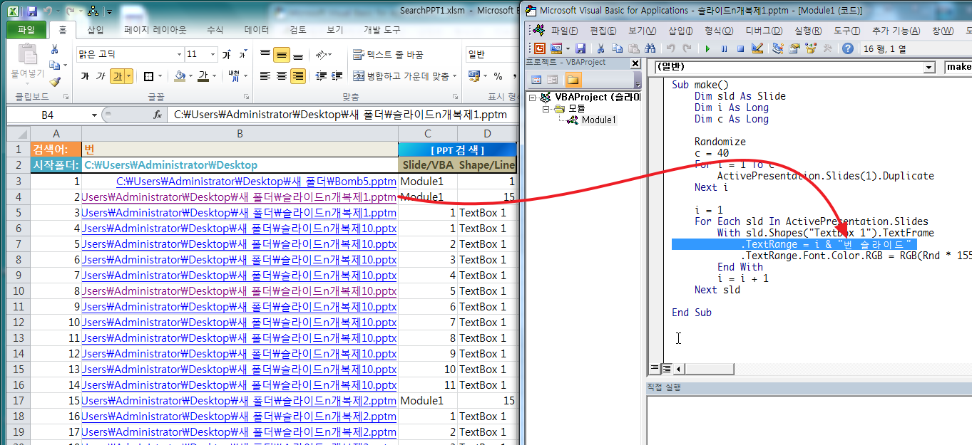 제목과 같이 특정 폴더 안의 여러개의 PPT 파일 안에서