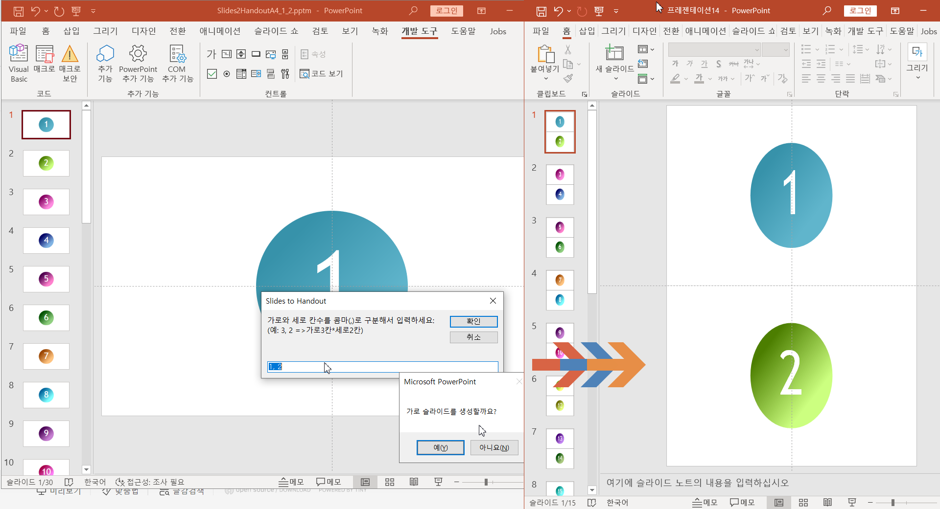 2, 3 을 입력하면 1페이지에 2*3(6개)개의 슬라이드이미지가 삽입되고