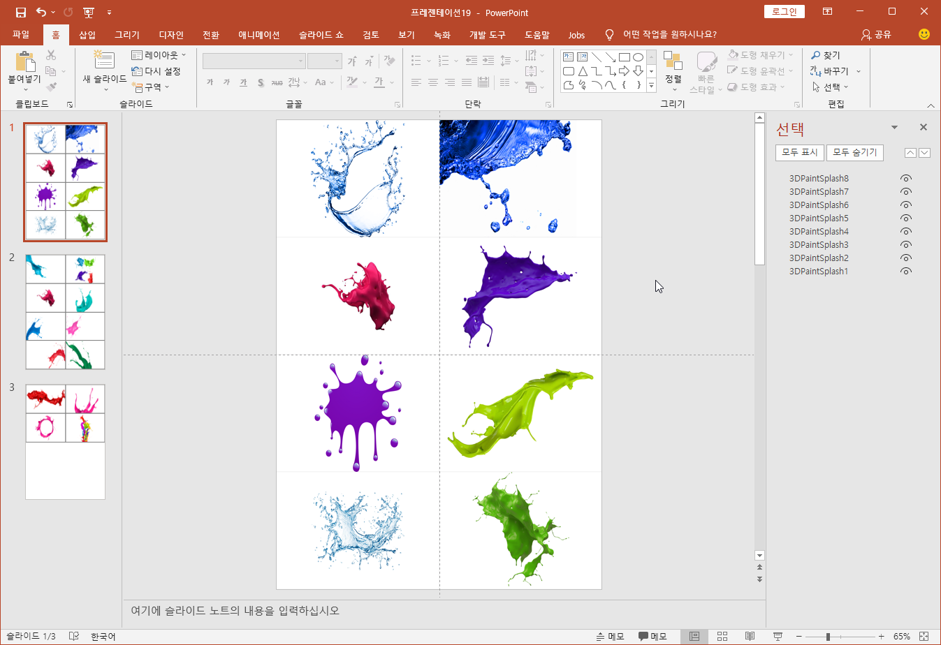 아래처럼 16:9 세로로 된 3슬라이드가 한꺼번에 출력된 PPT가 생성됩니다.
