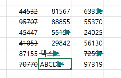 엑셀에서 따로 취소선의 서식을 지원하지 않으므로