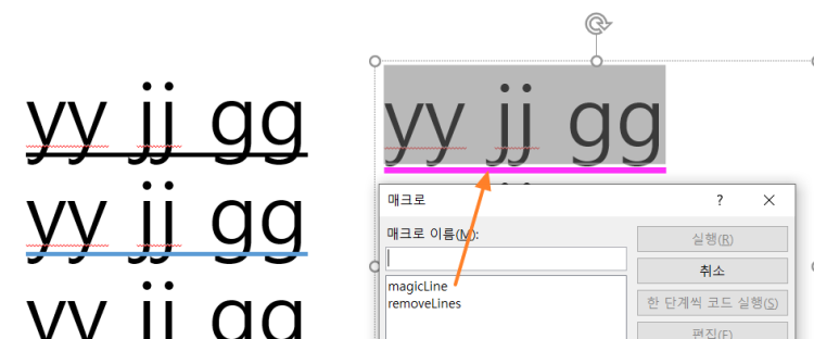 2. VBA로 선택된 텍스트 아래에 원하는 위치에 밑줄을 그어줄 수도 있습니다.