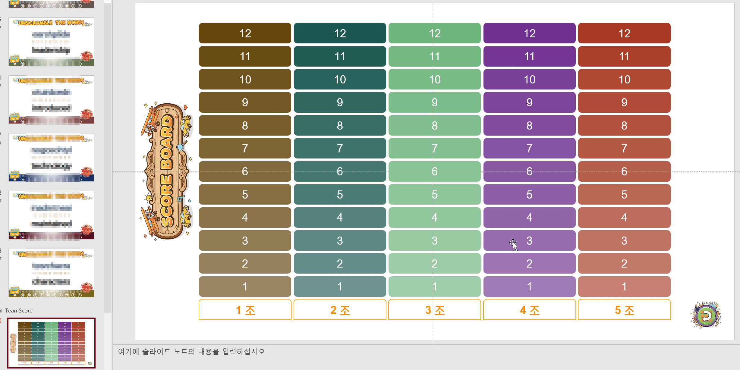 - 숫자선택 슬라이드에 각 팀별 점수판을 추가할 수도 있겠습니다.