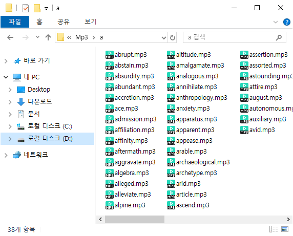네이버 사전 검색 및 발음 mp3 자동 다운로드