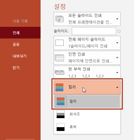 흑백이나 회색조로 인쇄하면 배경이 너무 진하게 출력됩니다.