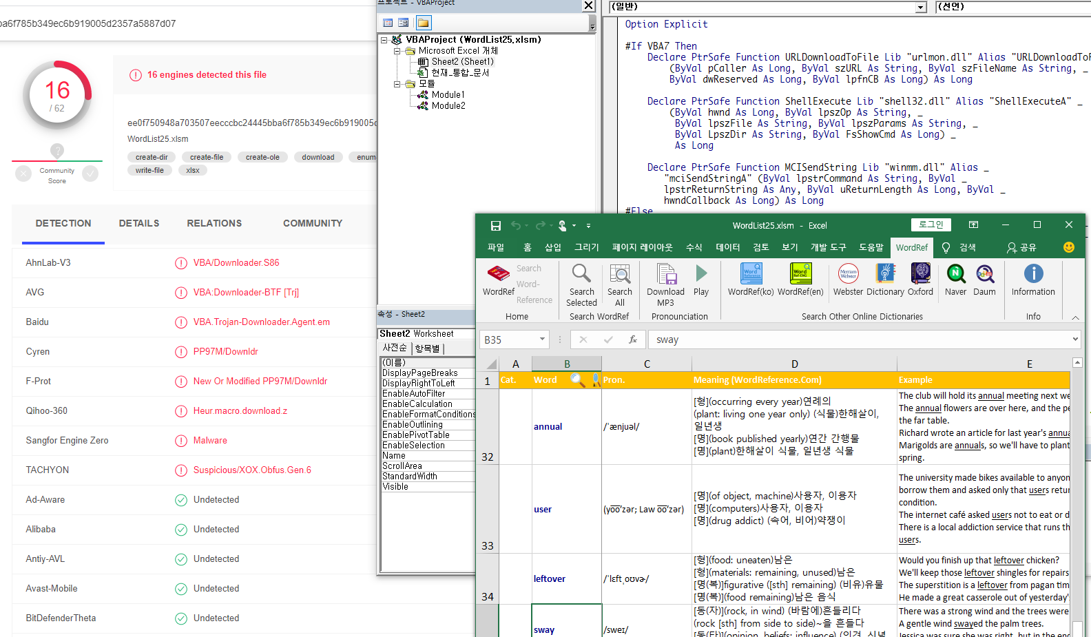 2. 몇몇 백신이나 티스토리서버에서 WordList25.xlsm 파일의 바이러스감염을 의심하지만