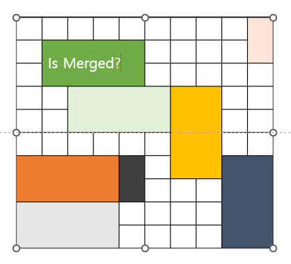 엑셀에서도 병합된 셀의 경우 처리하는 것이 쉽지 않습니다. 그나마 엑셀은 MeredArea 등으로 지원을 하지만 파워포인트에서는 셀이 병합되었는지조차 쉽게 알 수 없습니다.