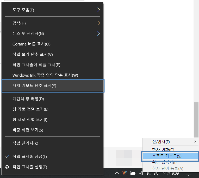 🤢 아래가 그 당시 상황이었음. 시작 >실행에서 devmgmt.msc를 실행하거나 바탕화면 내컴퓨터 우클릭 시스템 정보 > 장치관리자에 표준 PS/2키보드와 PS/2 마우스는 느낌표 표시로 오류 상황으로 키보드가 안되니 USB 마우스로만 고칠려니 답답할 지경임. 다행히 윈도우10은 작업표시줄 우클릭하고 터치키보드 단추를 켤 수 있음. 다른 외장 USB 키보드를 연결해도 장치 오류는 계속 발생하여 난감한 상태. 블루투스 키보드를 연결해도 장치 오류 발생.
