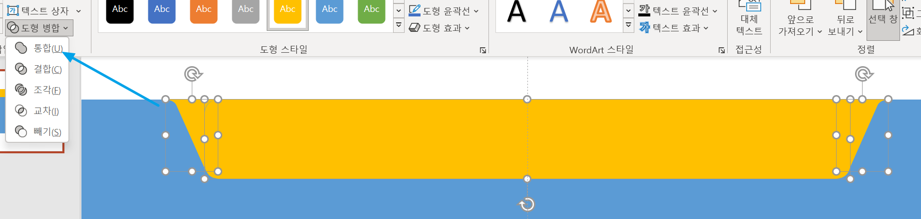 2. 두 도형을 선택