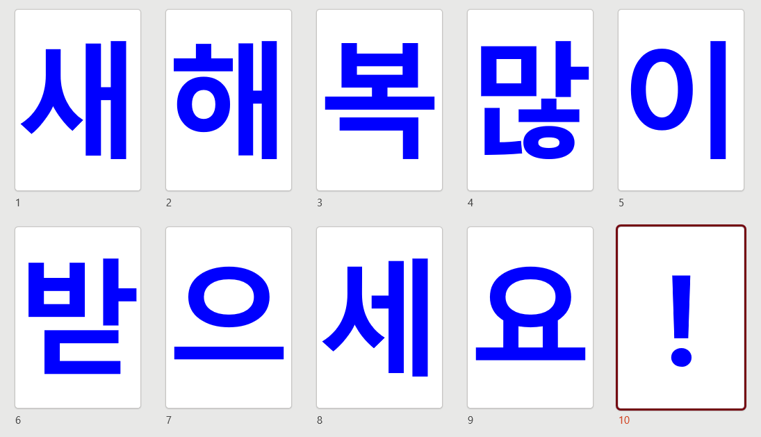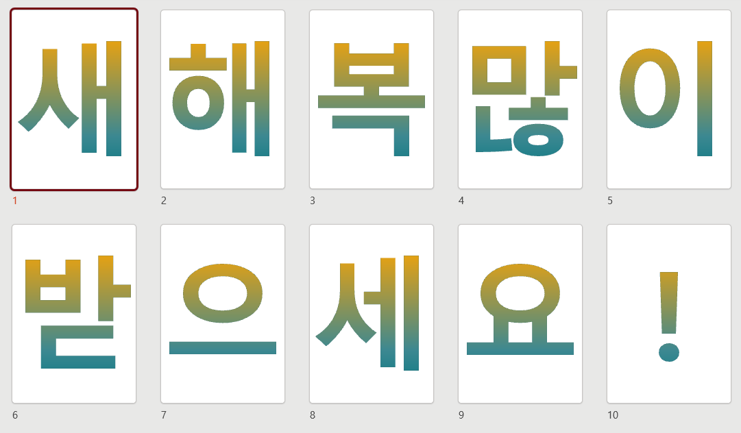 str = InputBox("각 슬라이드에 한 글자씩 가득차게 분할할 문구를 입력하세요.", , str)