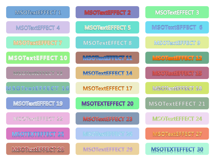 참고로 msoTextEffect 미리설정된 효과는 아래와 같습니다.