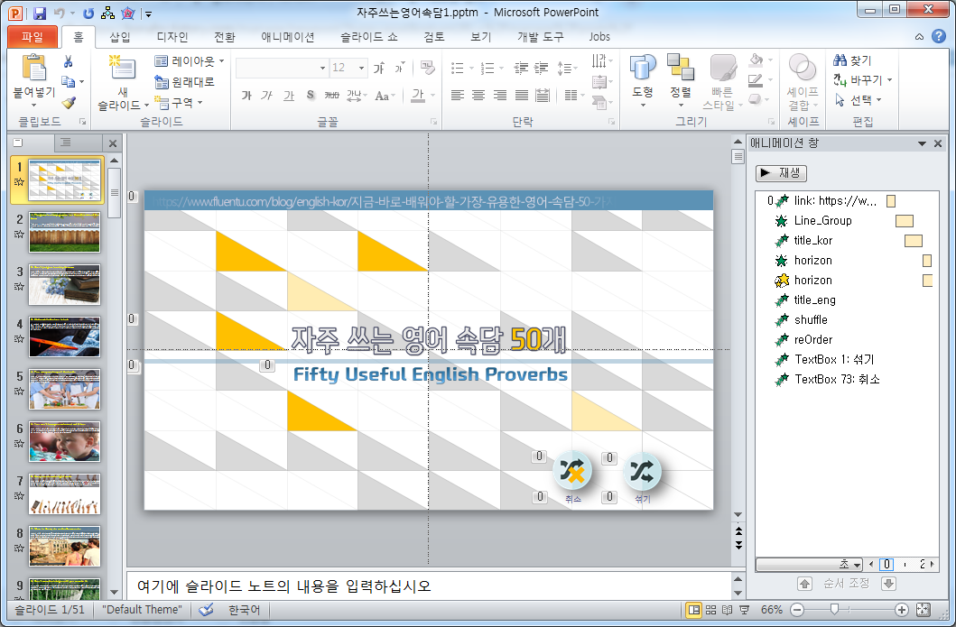 영어속담 부분에는 일반 애니메이션 효과를 주고