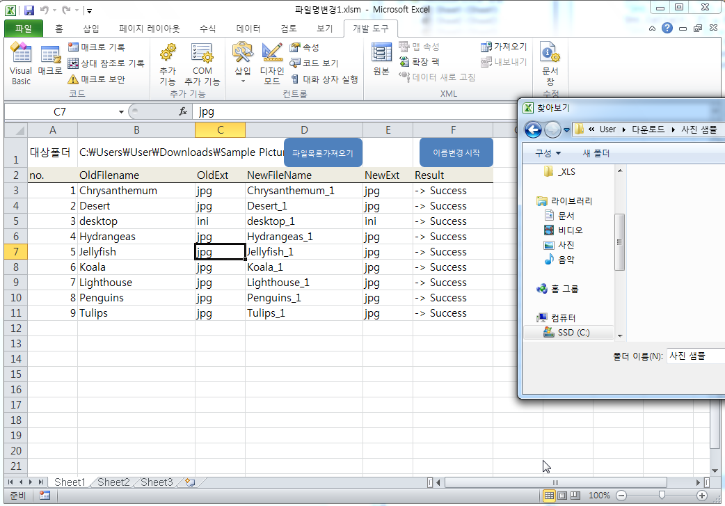새로운 파일명에 엑셀 수식을 이용해서 일괄적인 규칙을 부여할 때 유용하겠습니다.