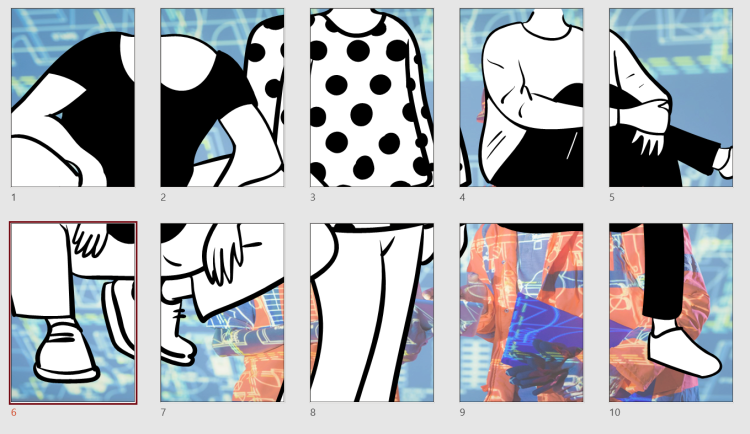 각 조각별로 슬라이드를 추가하고 emf이미지를 넣은 다음 해당되는 부분만 Crop해주게 됩니다.