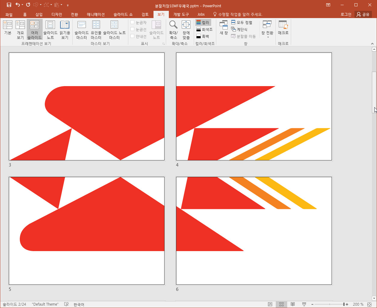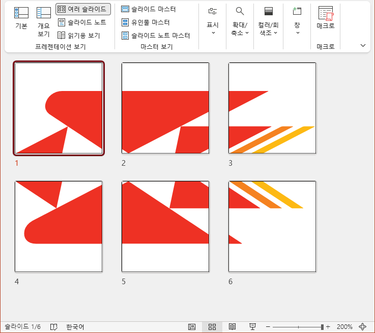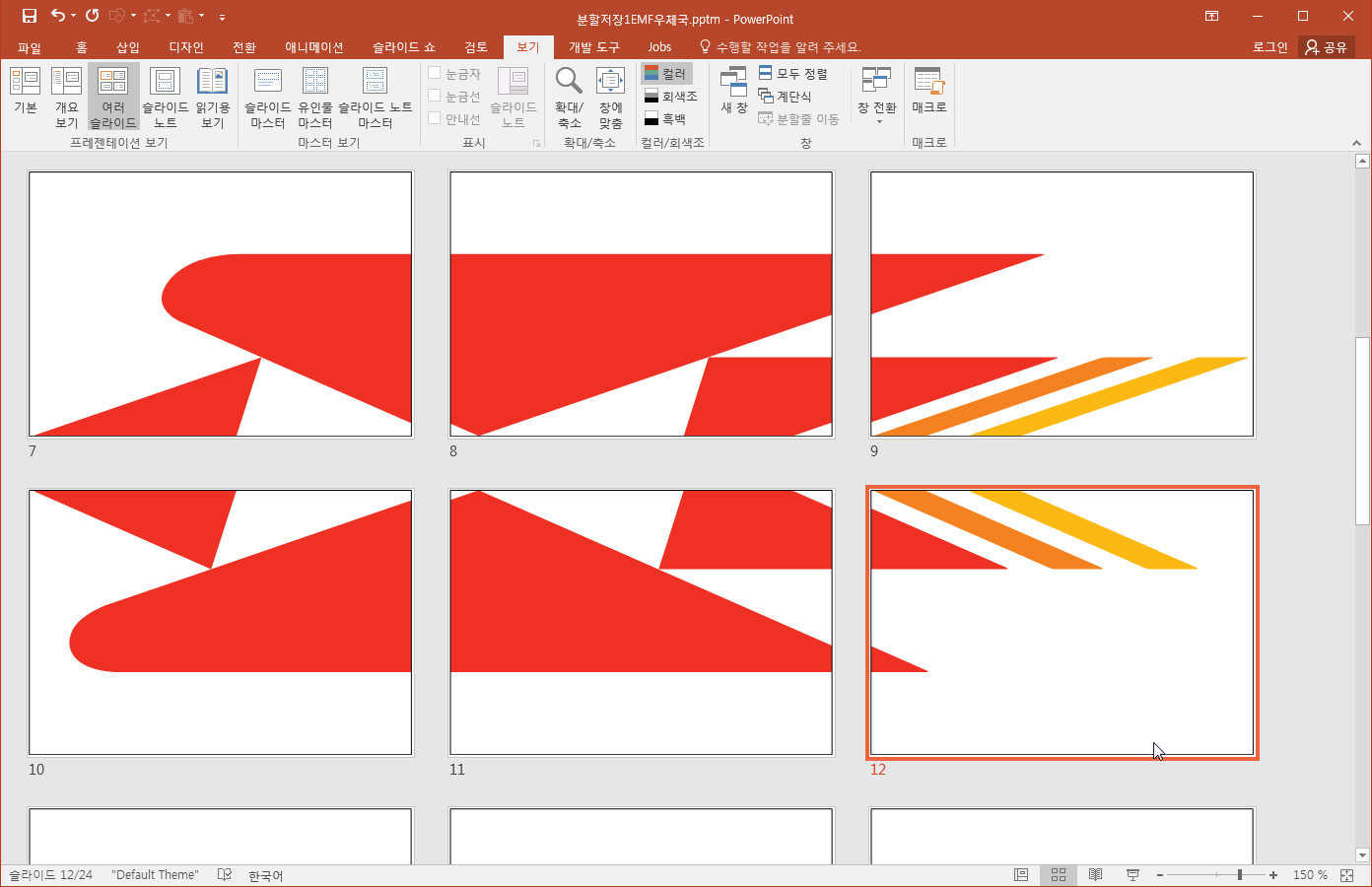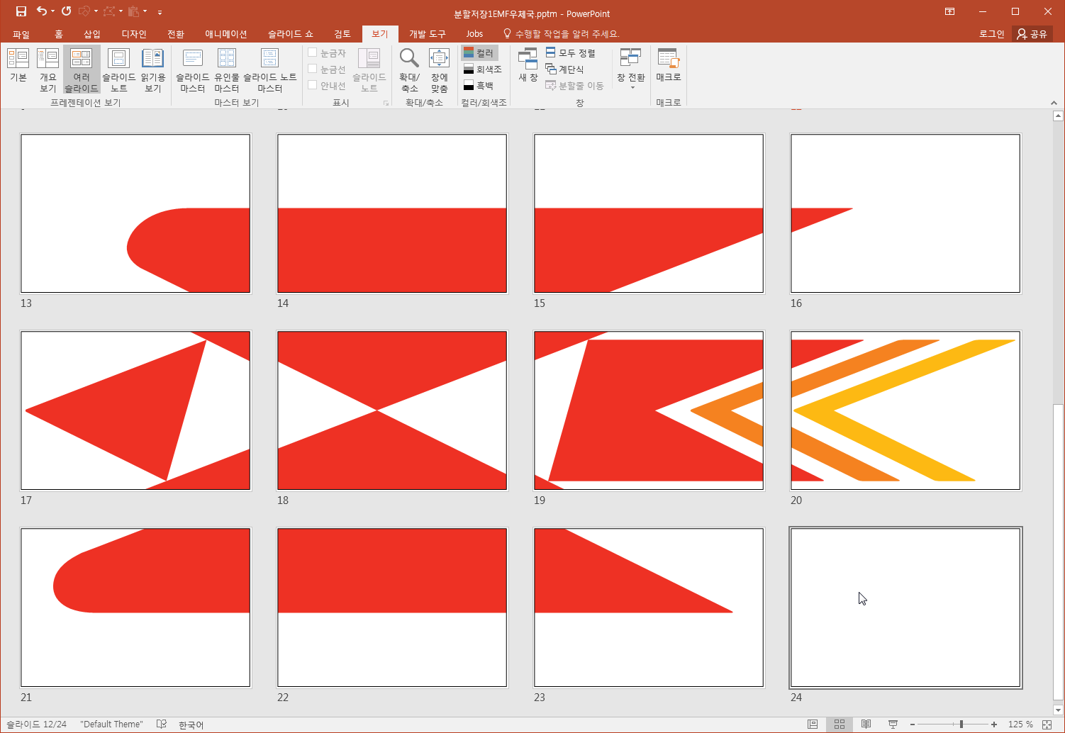 이렇게 원하는 칸수대로 슬라이드를 분할할 수 있습니다.