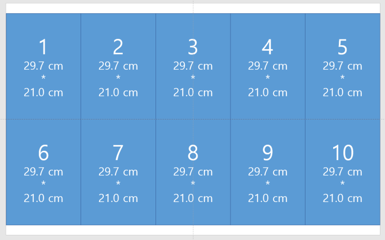 예를 들어 위처럼 위 아래에 여백이 조금 생기지만 5 * 2개의 A4비율 사각형(A4종이)로 나눌 수 있습니다.