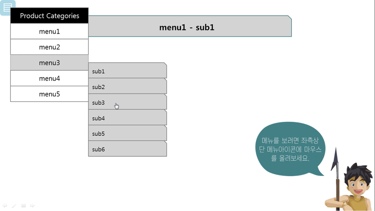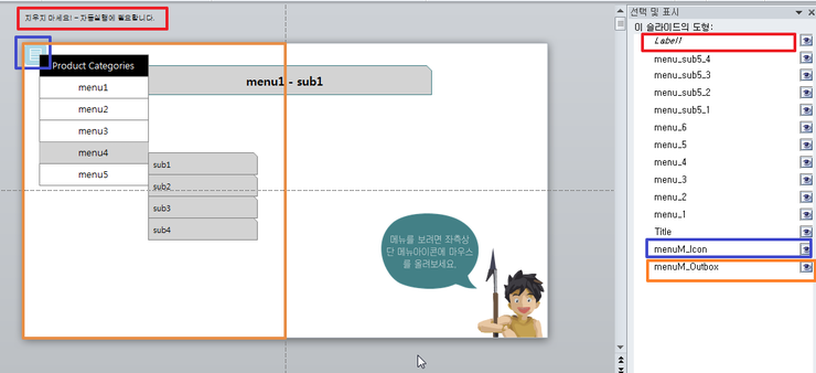 강좌라기 보다는 파워포인트에서 메뉴-서브메뉴 시스템 구현을 한번 시도해보는 것이 목적입니다.